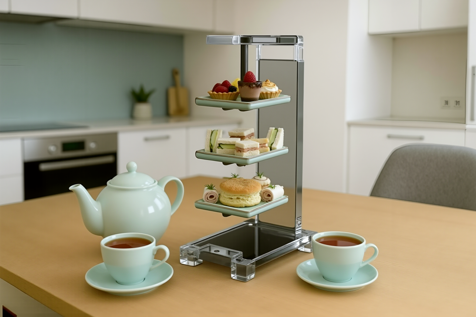 Orbit Tray is a 3-tiered tray for afternoon tea that prioritizes community and efficiency for the user